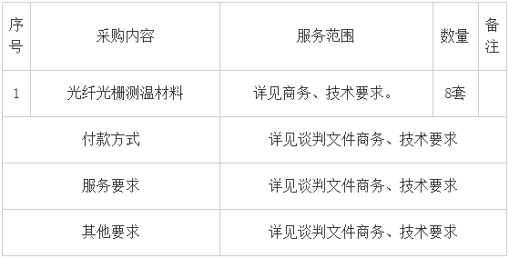 2.項目名稱:某單位光纖光柵測溫材料采購項目